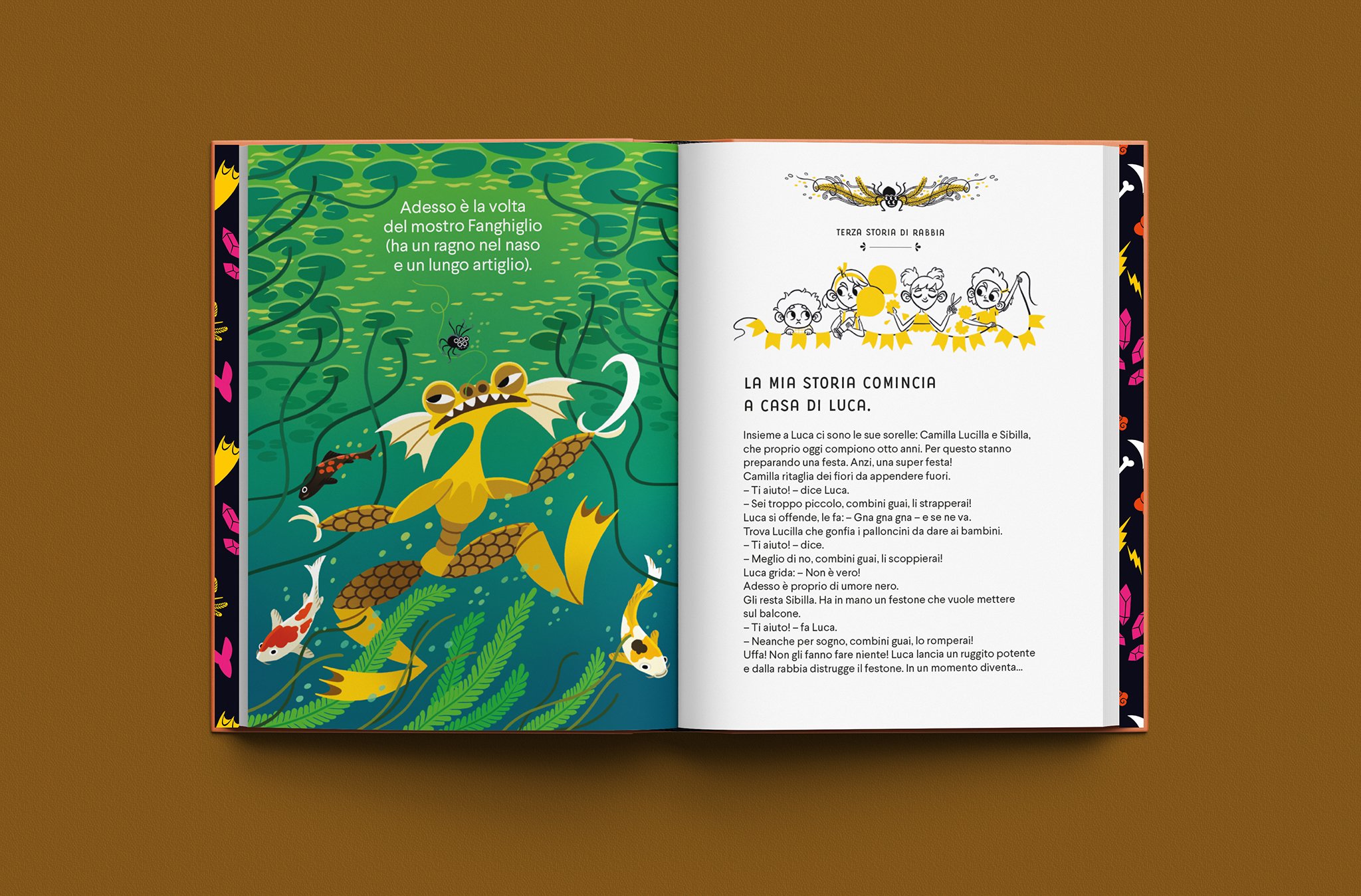 Scritto da Giuditta Campello e illustrato da Beatrice Costamagna, Tre storie di rabbia (raccontate dai mostri) affronta con ironia il tema della rabbia nei bambini, emozione spesso repressa o condannata perché reputata negativa, sbagliata. Tre mostri eccentrici e per nulla spaventosi diventano i narratori delle storie che hanno come protagonisti tre bambini alle prese con questa esplosiva emozione.